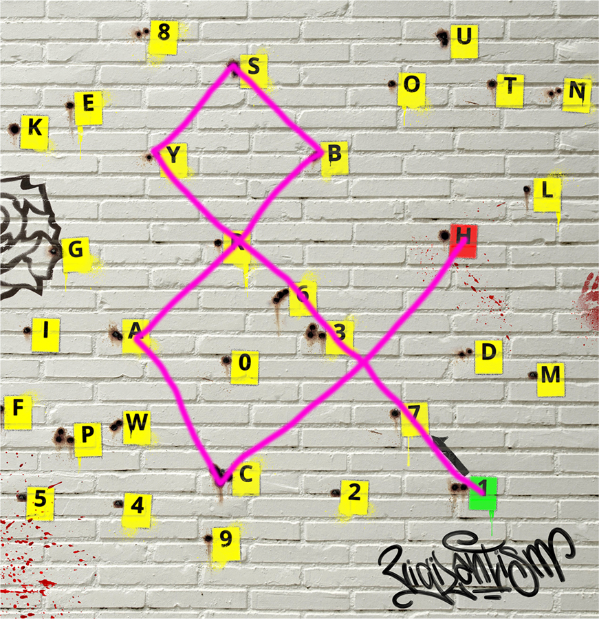 • The clue’s missing piece is on page 5 (the graffiti called ‘Bisected Evidence’). Fold the paper and join the halves together to read the complete clue.